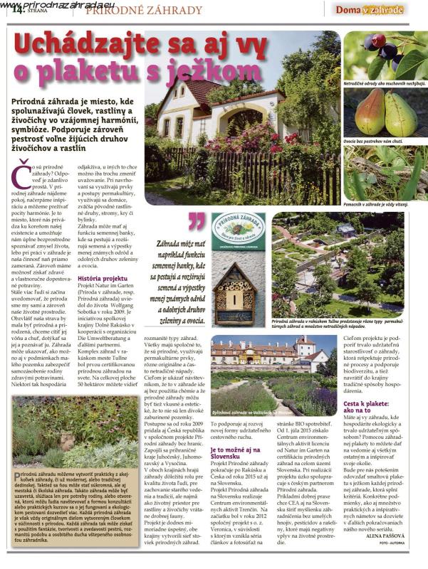 Najnovší článok o prírodných záhradách uverejnený v prílohe denníka Sme - Doma v záhrade. Okrem seriálu o Prírodných záhradách sa tu dozviete množstvo zaujímavostí o pestovaní bez chémie, o jedlom lese, o sadení dlhovekých vysokokmenných stromoch a mnoho iného.